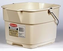 Heavy duty wire bails offer extra durability for heavy use. Twin spouts guide water flow from either side. Recessed grips on bottom allow for easy controlled pouring. Handle grips designed for comfortable carrying. 15 quart. 14.5'' x 12.25'' x 9''.- "RUBBERMAID" BISQUE ROUGHNECK BUCKET